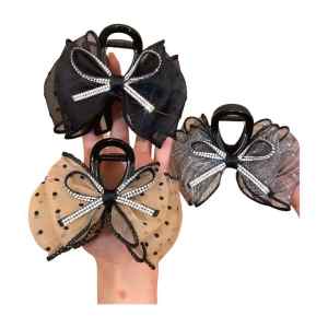 2pcs Korean-Style Elegant Sparkling Rhinestone Double Bow Hair Clip – Random Color