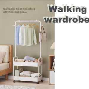 • Wardrobe with Wheels & Compartmented Storage Coat Rack – Random Color