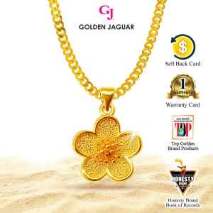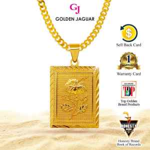 EmasJaguar 16.8g 916 Gold Plated GJ Rantai Leher Necklace Papan + Loket Bunga Raya 3D Petak (416500201+BR3DR71619)