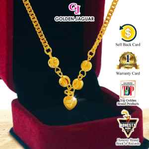 EmasJaguar 6.5g 916 Gold Plated GJ Rantai Leher Necklace Papan + Loket Pendant Love 24K Gold Plated (416500201+LB756)