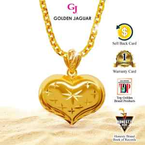 EmasJaguar 21.3g 916 Gold Plated GJ Rantai Leher Necklace Sauh 0.4 + Loket Love Bintang Besar (4146600401+LBS756)