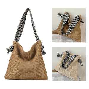 • Woven Rattan Bag with Wide Shoulder Strap – Random Color