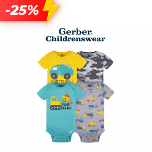 Gerber Trucks Short Sleeve Onesies Bodysuits 4pcs