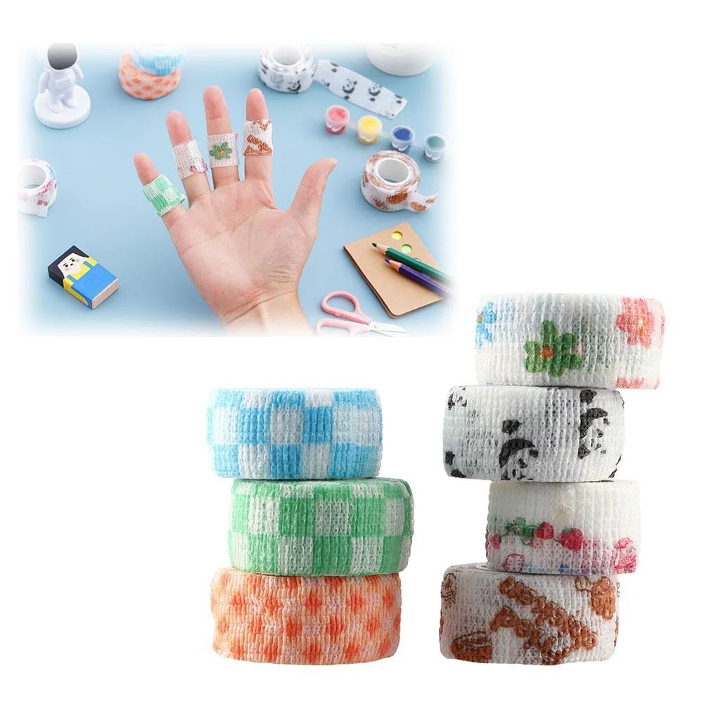 10pcs Cute Printed Anti-Chafe Self-Adhesive Elastic Finger Bandage – Random Color