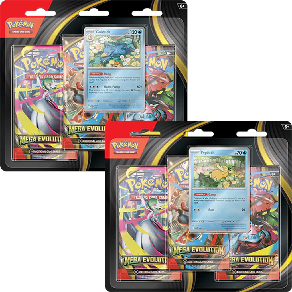 2 Box Pokémon TCG – ME01 Mega Evolution 3 Pack Blister (Psyduck + Golduck)