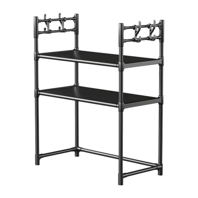 - With three spacious tiers, this rack lets you freely store dishes, sauce bottles, jars, toasters, and more — all while occupying just a corner of your countertop. Its elevated tier design can accommodate microwaves, ovens, and other kitchen appliances of different sizes, so you never have to worry about fitting your equipment.