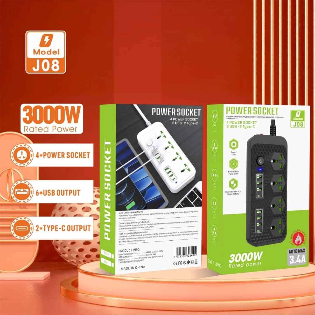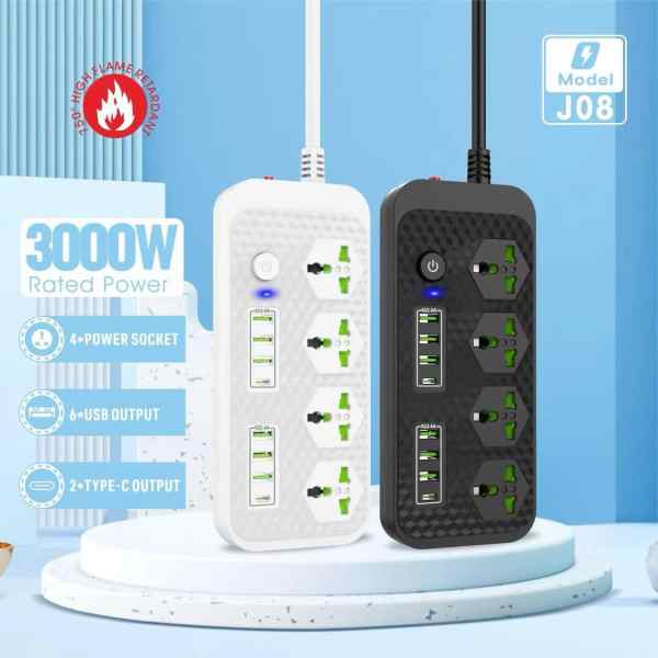• 🔌 4 Power Socket - 6 USB Output - 2 Type- C Output