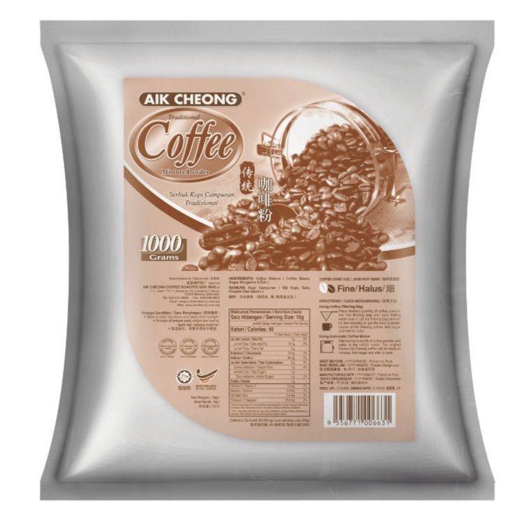 - Discover the authentic taste of traditional Malaysian coffee with Aik Cheong’s Premium Traditional Coffee Powder. Made from carefully selected coffee beans and expertly roasted, this finely ground blend offers a bold aroma and smooth, full-bodied flavor that coffee lovers appreciate. Whether you enjoy your coffee black, with milk, or as a classic “kopi,” this 1000g pack ensures freshness and satisfaction in every cup.