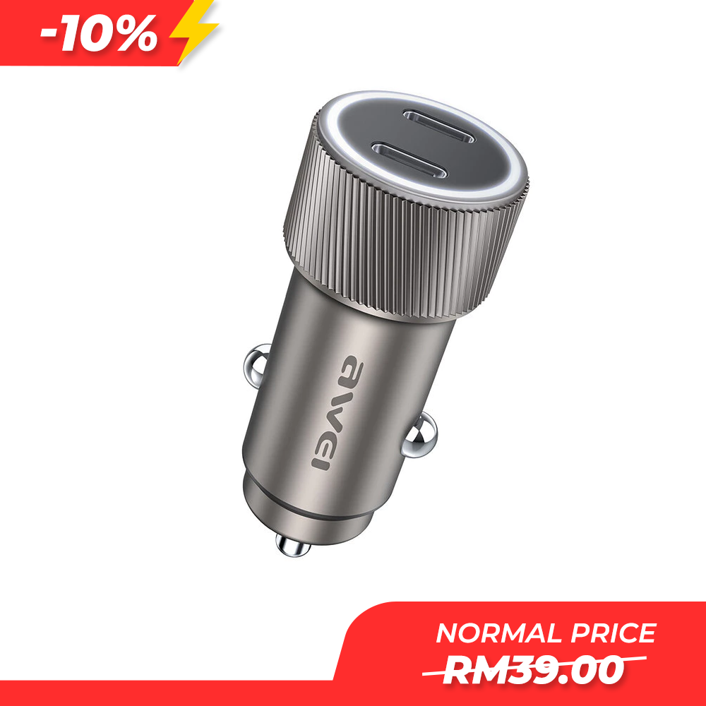 Awei C-858 33W Dual Type C Port LED Fast Car Charger