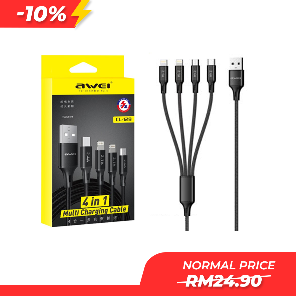 Awei CL-129 4 In 1 Fast Multi Charging Data Cable