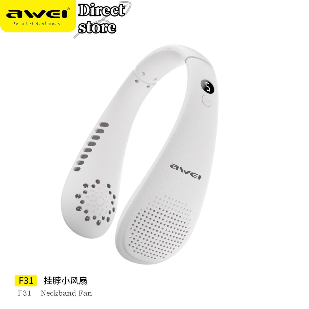 Awei F31 Rapid Cooling Air Bladeless Neckband Fan Sport Fan Portable Fan Bladeless 5 Wind Speeds
