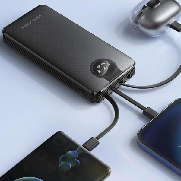 • Includes built-in cables for Type-C, Micro USB, and Lightning connections, eliminating the need to carry extra cables and ensuring compatibility with a wide range of devices.