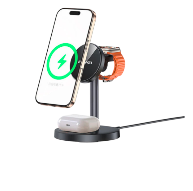 - Mobile phone, watch, headphones, three in one wireless charger