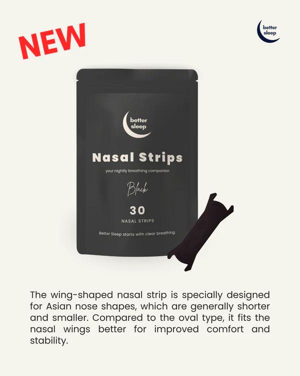 - Say goodbye to restless nights caused by nasal congestion and snoring. BetterSleep Wing-Shaped Nasal Strips are specially designed for shorter, smaller noses—common among Asians. The unique butterfly/wing shape fits the nasal wings perfectly, gently opening your nasal passages for easier breathing and more restful sleep—night after night.