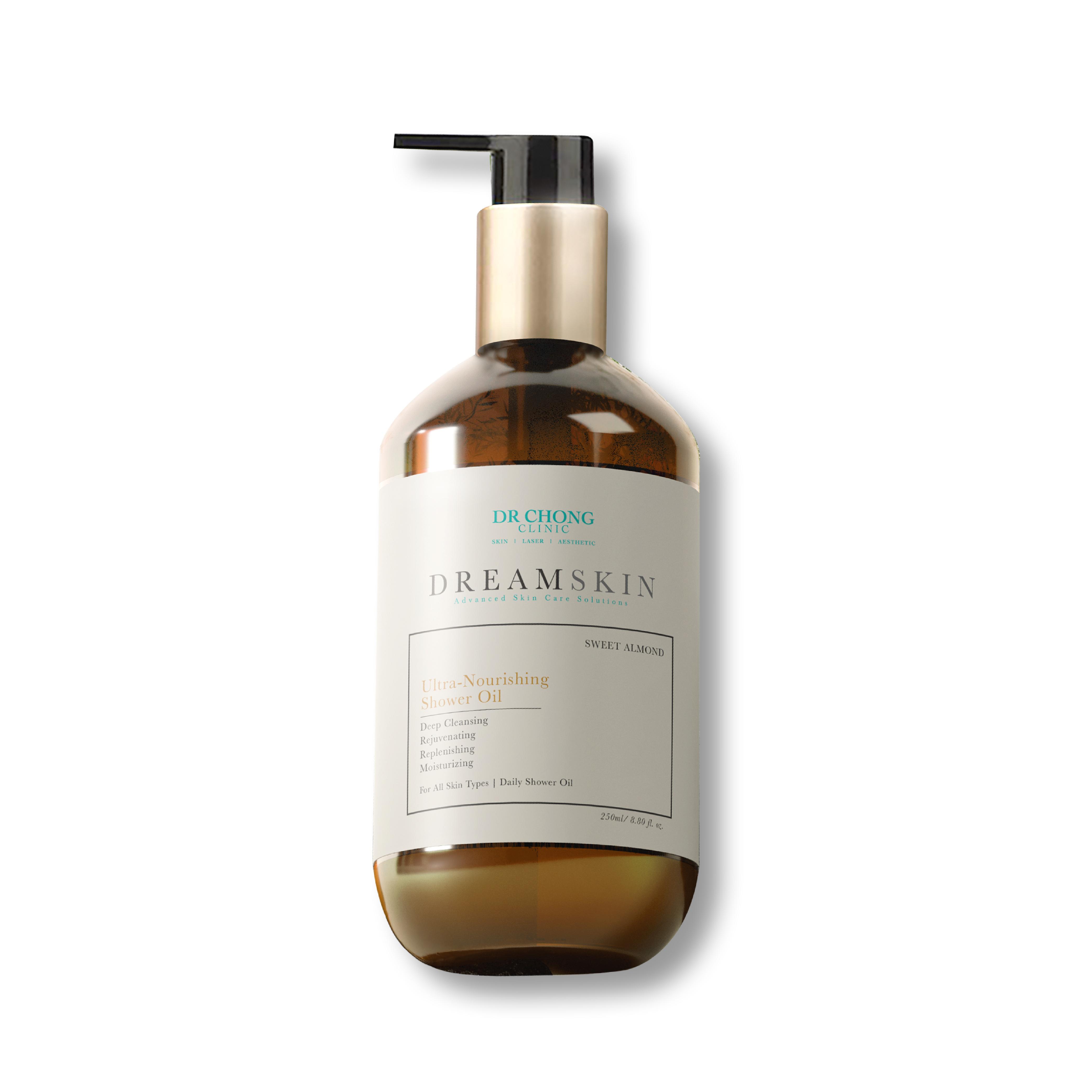 DR CHONG CLINIC Dreamskin Ultra-Nourishing Shower Oil is a luxurious oil cleanser designed to cleanse, replenish, and protect the skin barrier in one step. Formulated with 3 plant-based oils and advanced moisturizing actives, it removes impurities effectively while leaving skin soft, smooth, and hydrated even after showering.