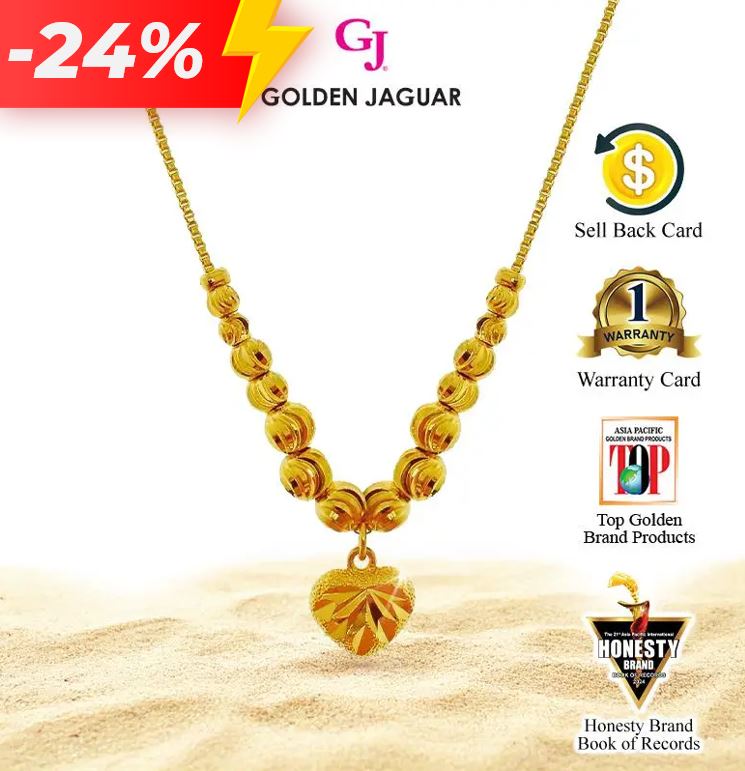 EmasJaguar 12.9g 916 Gold Plated GJ Rantai Leher Necklace Choker Kotak Bulan Sabit Pure Love (4276450109-PL)