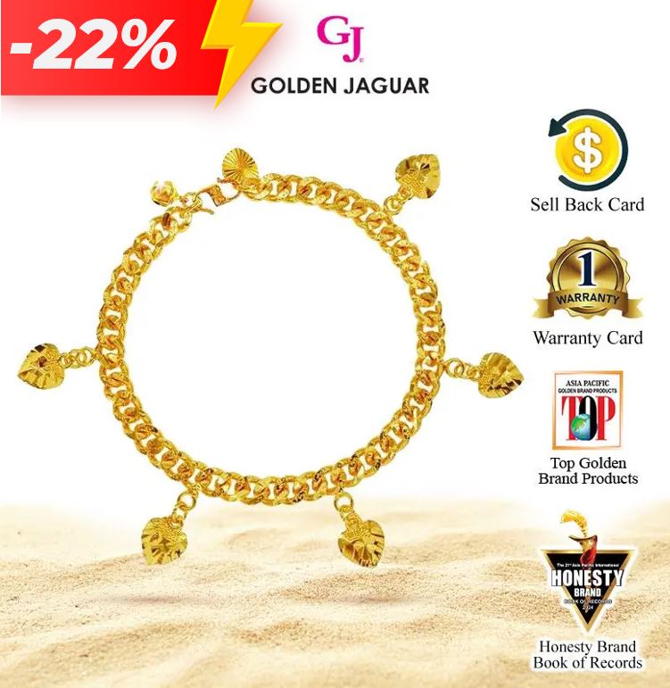 EmasJaguar 15.5g 916 Gold Plated GJ Gelang Tangan Bracelet Papan Pasir Kikir 0.5 + Love Ace (2160502-LA)