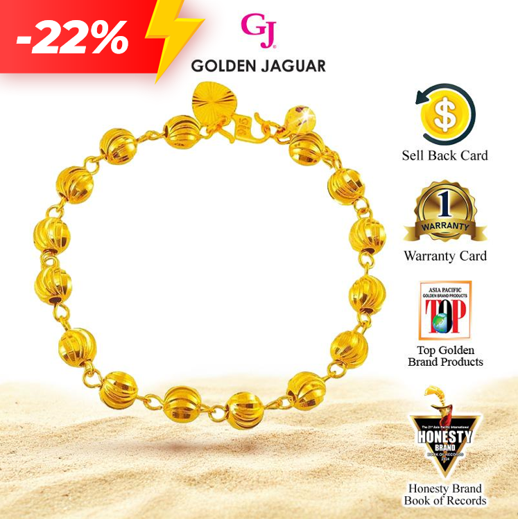 EmasJaguar 15.8g 916 Gold Plated GJ Gelang Tangan Bracelet Bulan Sabit Boba 0.7 (2960701)