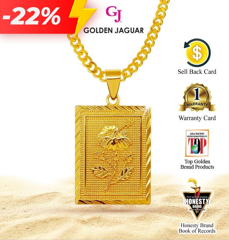 EmasJaguar 16.8g 916 Gold Plated GJ Rantai Leher Necklace Papan + Loket Bunga Raya 3D Petak (416500201+BR3DR71619)