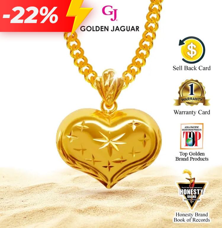EmasJaguar 28.6g 916 Gold Plated GJ Rantai Leher Necklace Papan 0.4 + Loket Love Bintang Besar (416600401+LBS756)