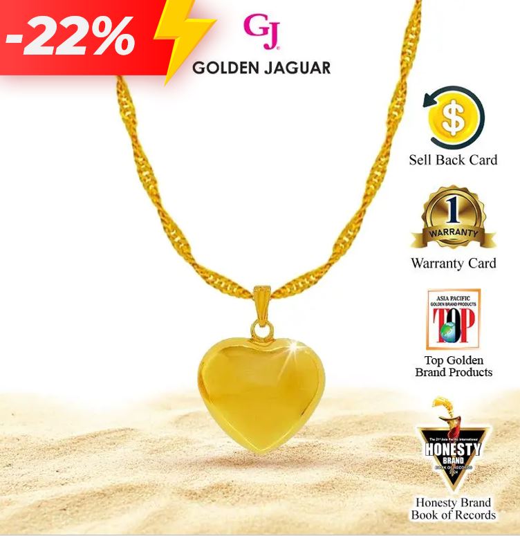 EmasJaguar 6.3g 916 Gold Plated GJ Rantai Leher Necklace Gila Gila SS 50CM + Loket Love Gemok (456500203+LGM75616)
