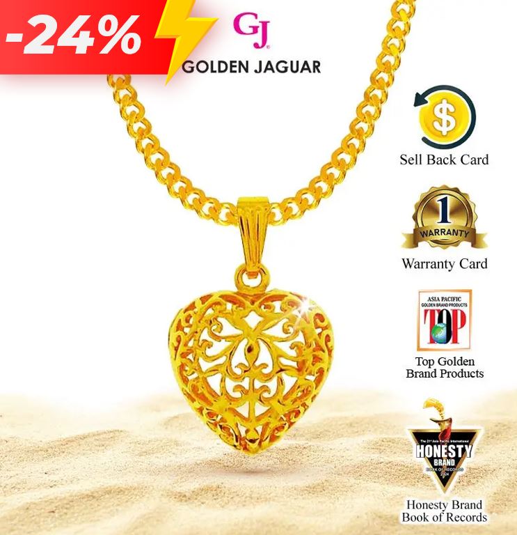 EmasJaguar 7.4g 916 Gold Plated GJ Rantai Leher Necklace Papan 50CM + Loket Love Hollow (416500201+LH756)