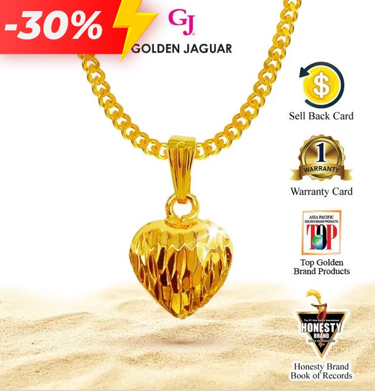 EmasJaguar 7.4g 916 Gold Plated GJ Rantai Leher Necklace Papan 50cm + Loket Love Kerang (416500201+LKSM756)