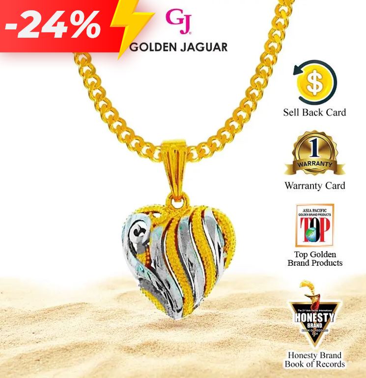 EmasJaguar 8.2g 916 Gold Plated GJ Rantai Leher Necklace Papan 50CM + Loket Love 3000 (416500201+L3758)