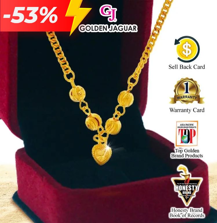 EmasJaguar 9.3g 916 Gold Plated GJ Rantai Leher Necklace Papan Bulan Sabit Double Simple Love + Box Necklace (416450309-SL+12101BN)