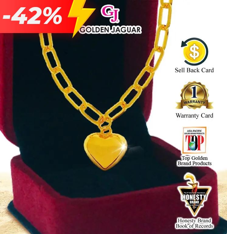 EmasJaguar 9.8g 916 Gold Plated GJ Rantai Leher Necklace Paperclip 0.5 Love Gemuk 50cm + Box Necklace (4246500509-LG+12101BN)