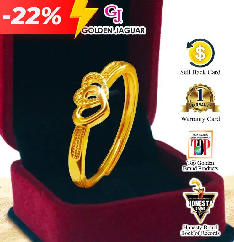 EmasJaguar g 916 Gold Plated GJ Cincin Ring Minimalist 2 Love Adjustable Size 14-28cm (899858+12101BR)