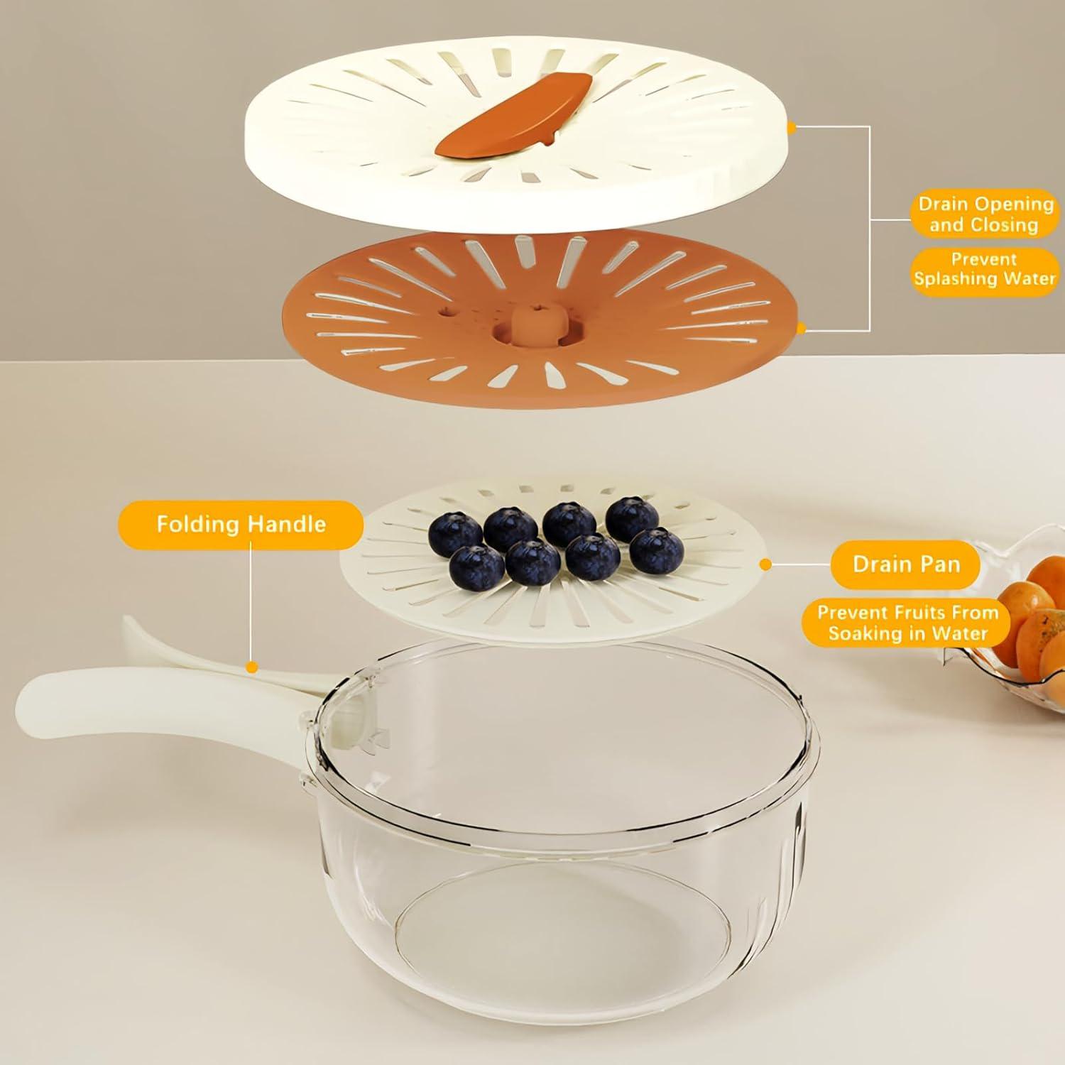 - One Container, Multiple Functions Washing, draining, storing, and carrying—all in one Draining switch design helps control water flow and avoid mess
