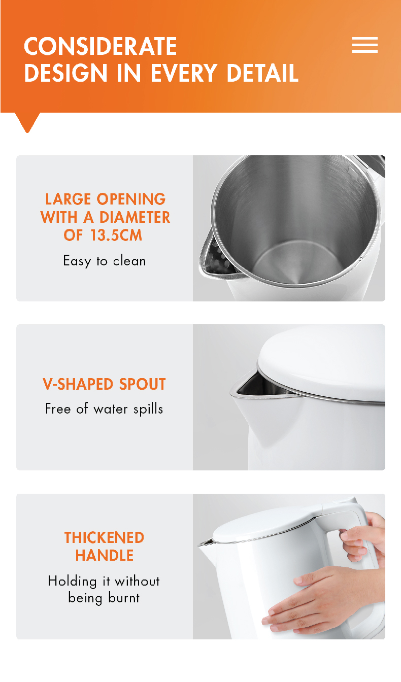 Gaabor Electric Kettle 1.7L EK20M-WH01A (WHITE)