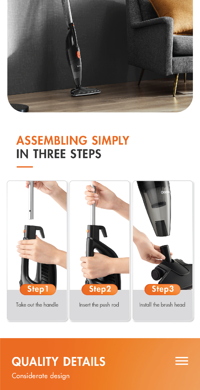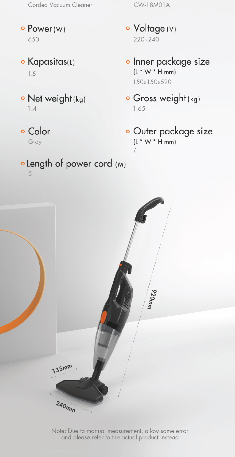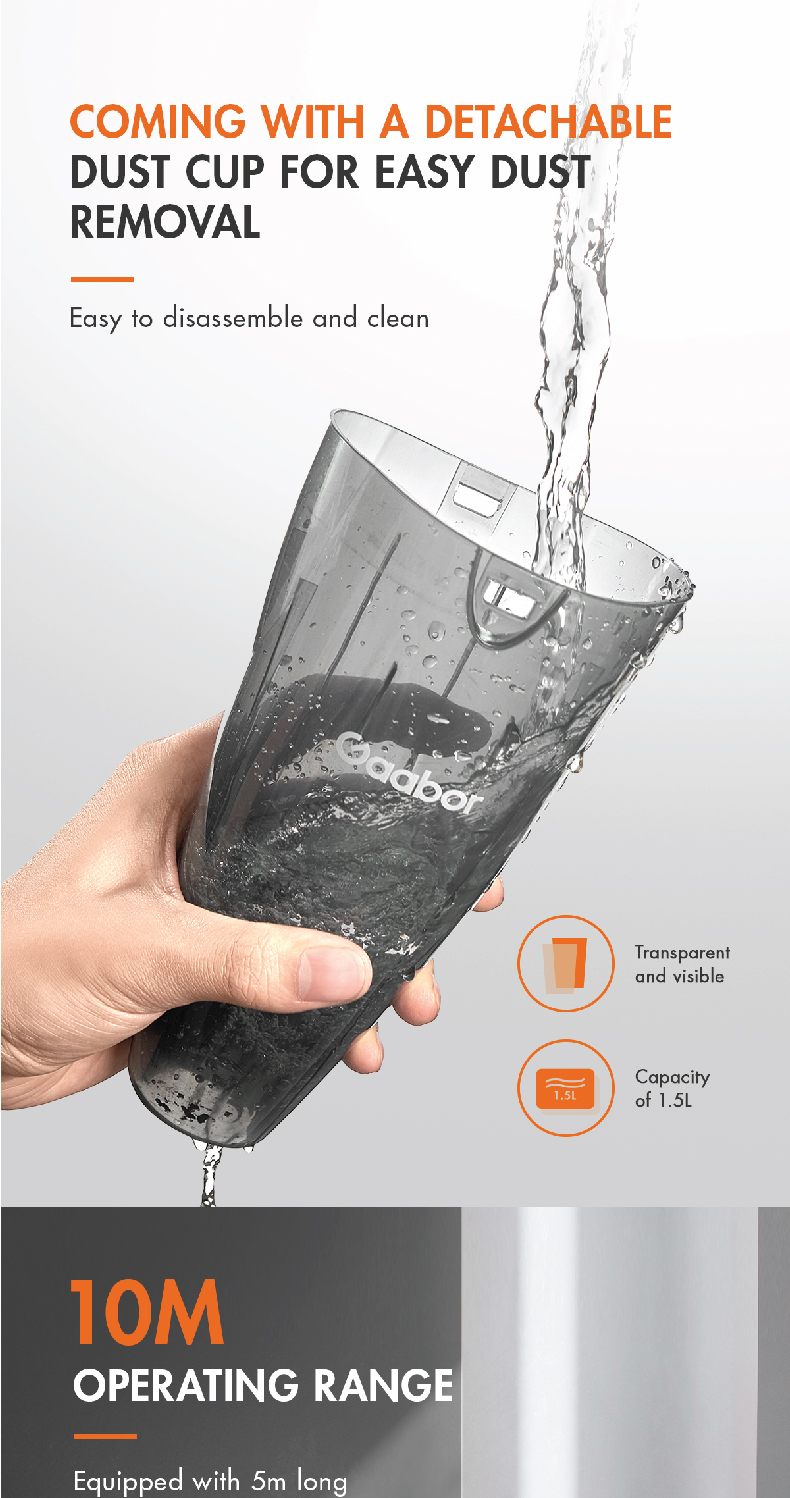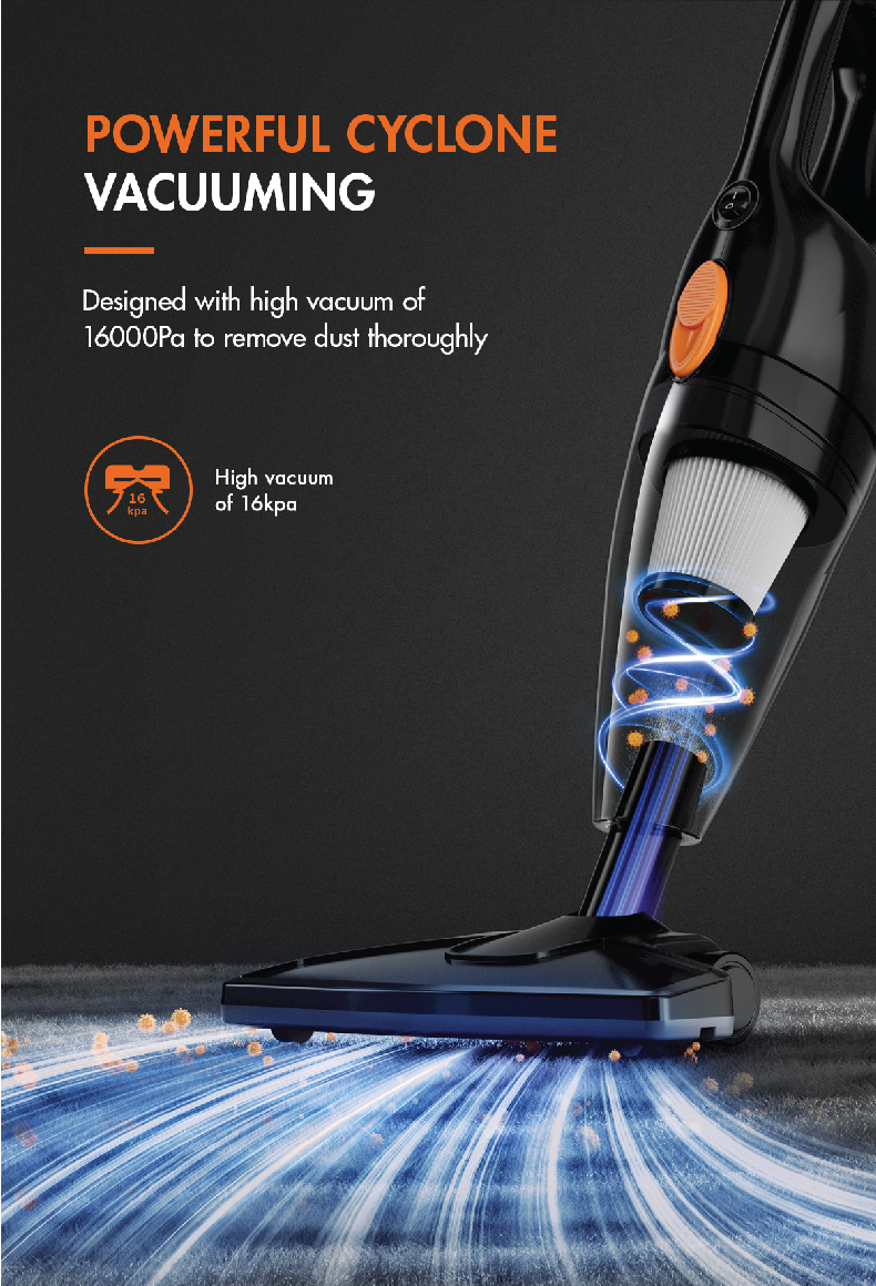 - Strong suction of 16000Pa, dust and particles being sucked and cleaned