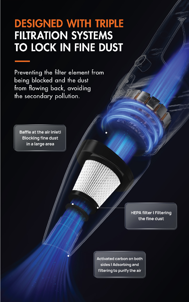 ~ Strong suction of 16000Pa, dust and particles being sucked and cleaned