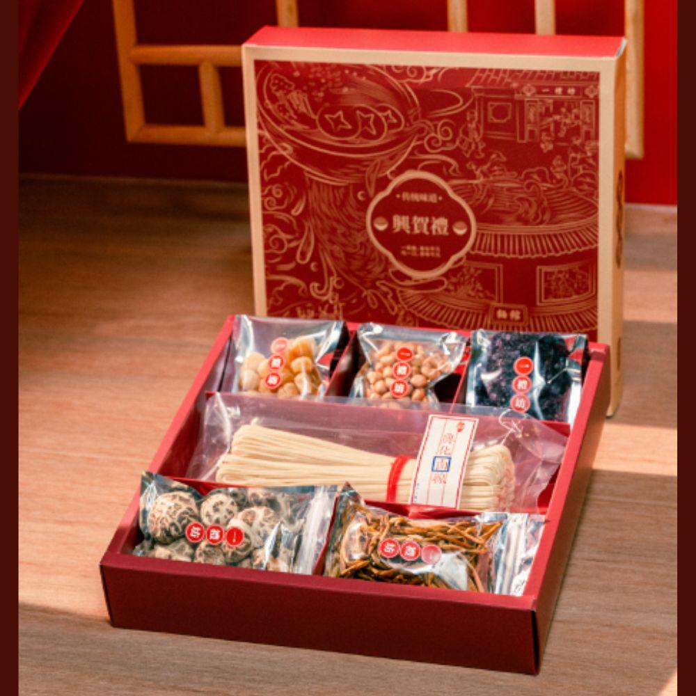 • This gift set includes 1x Hing Hua Mee Sua, 1x Anna Ground Nuts, 1x Premium Shiitake Mushrooms, 1x Japanese Scallops, 1x Seasoning Seaweed, 1x Premium Golden Lily Flowers, 2x Premium Chicken Bone Soup Seasoning Packets, 1x Personalized Cooking Instruction Card, and 1x Handwritten CNY Designer Greeting Card.