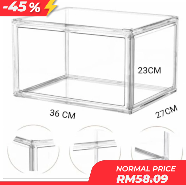 This is a clear acrylic storage box with a sturdy frame design, perfect for showcasing and protecting your items while keeping them easily visible. With its clean, transparent appearance and modular structure, it’s ideal for organizing collectibles, shoes, accessories, or display items.