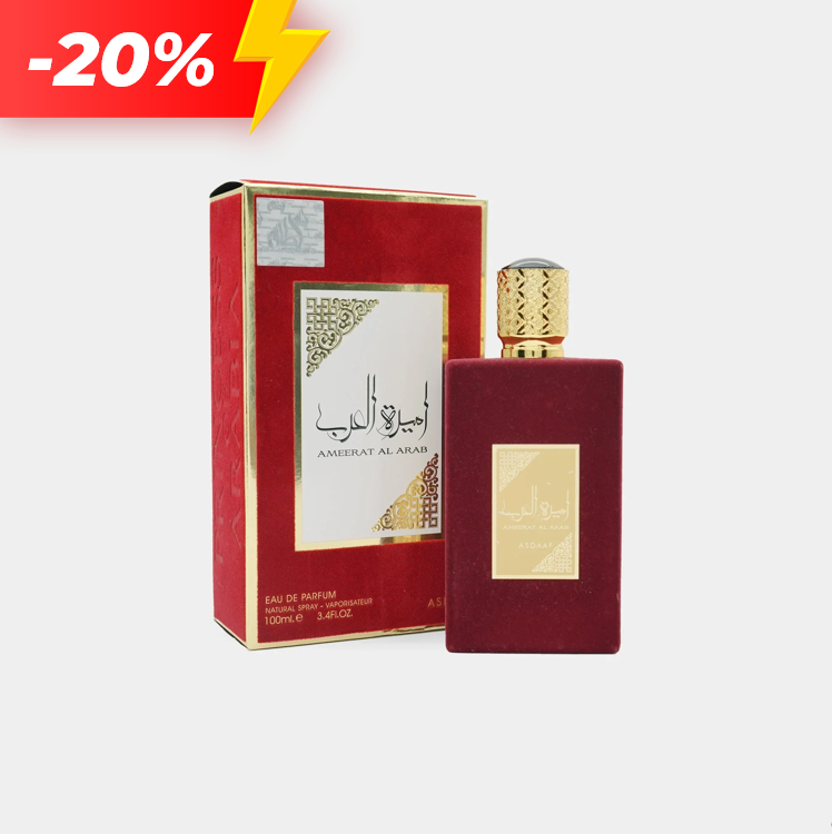 Lattafa Ameerat Al Arab EDP 100ml is an oriental woody fragrance that captivates with its sensual blend of spices, resins, exotic woods, and essential oils, rooted in aromatic oriental and woody notes. It opens with energizing top notes, transitions into a floral heart dominated by jasmine, and settles into a rich base of wood, musk, and oud for intense, long-lasting allure.​