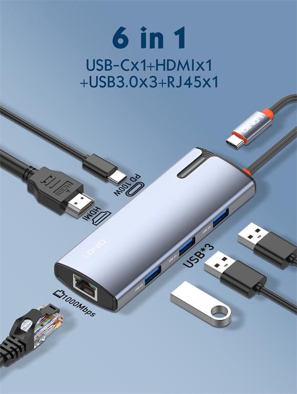 Ldnio DS-16H 6 In 1 USB-C Laptop Converter