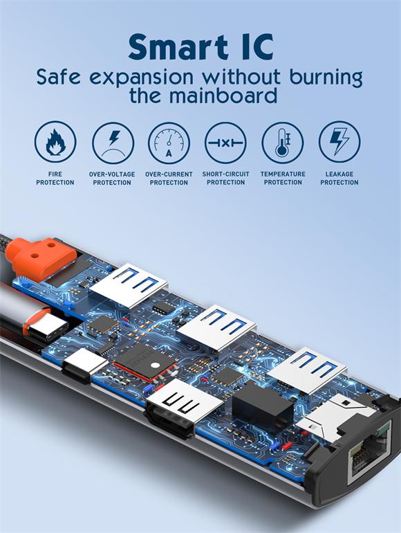 2. Comprehensive connectivity: HDMI 4K, USB 3.0*3, RJ45 Ethernet, Type-C PD charging