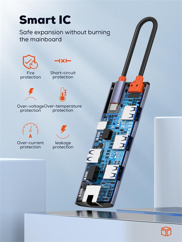 2. Multiple ports: USB 3.0*3, USB 2.0*1, RJ45*1, and Type-C PD charging