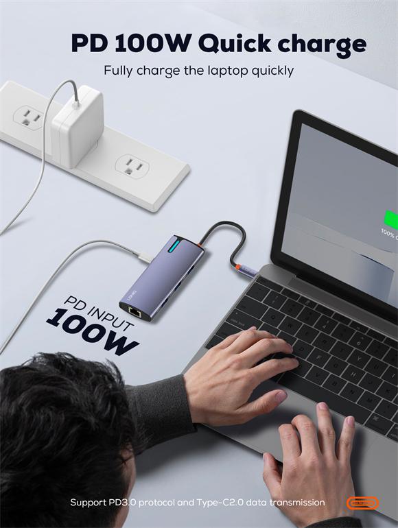 4. PD 100W fast charging powers devices while enabling multi-tasking
