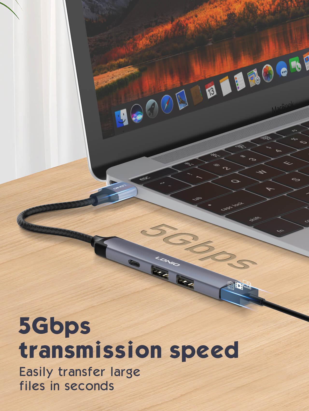 1. 4-in-1 multifunction hub with USB-C input for laptops, tablets, and MacBook