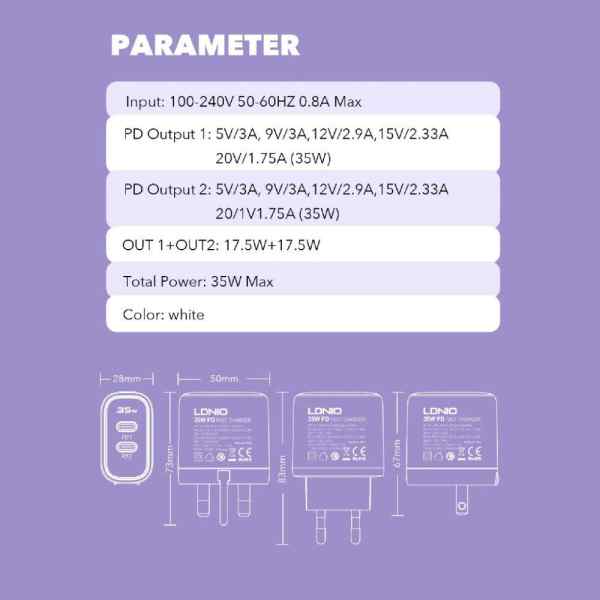Ldnio Super Fast Charger Adapter 35W A2528C