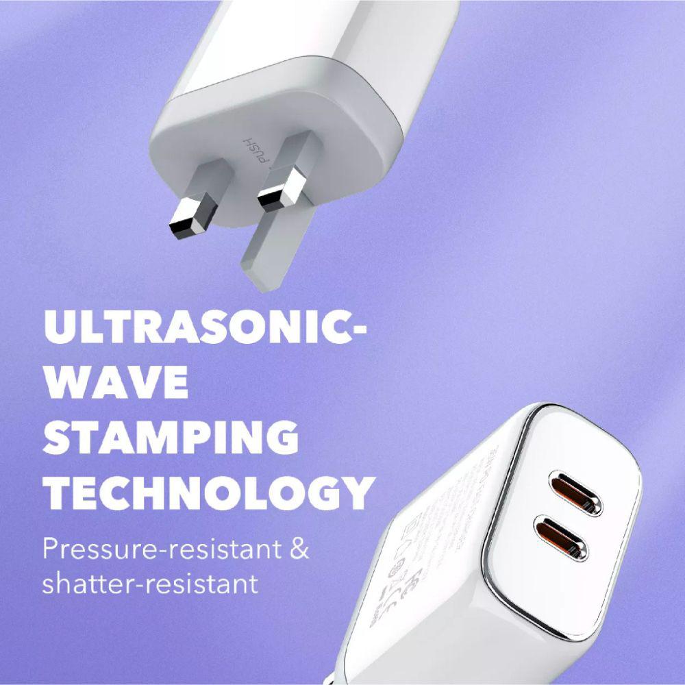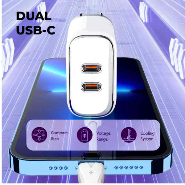 • Dual PD Super Fast Charging, charges multiple devices at high speed.