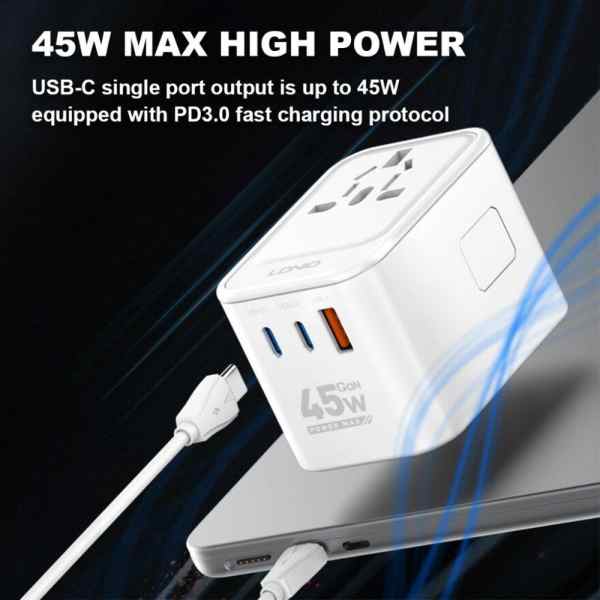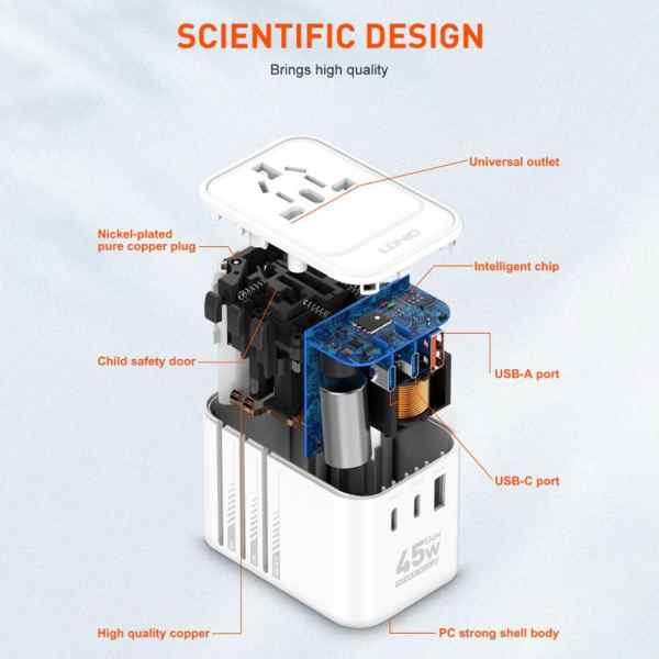 • Integrated US/UK/EU/AU sockets and plugs for global compatibility.