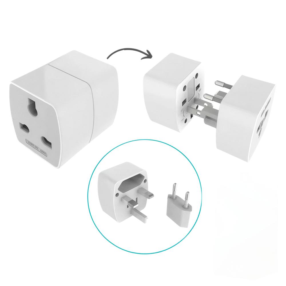 2) Dual universal AC sockets to power two devices at the same time