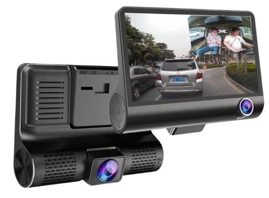 • 3 Camera Lens. Front Lens + Indoor Car Lens + Rear Lens.