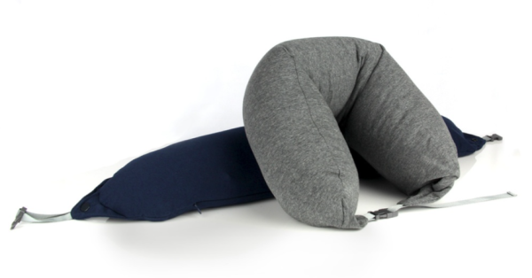• The outer cover features a zipper for easy removal, a plastic buckle for secure attachment, and a snap button to keep the pillow in place