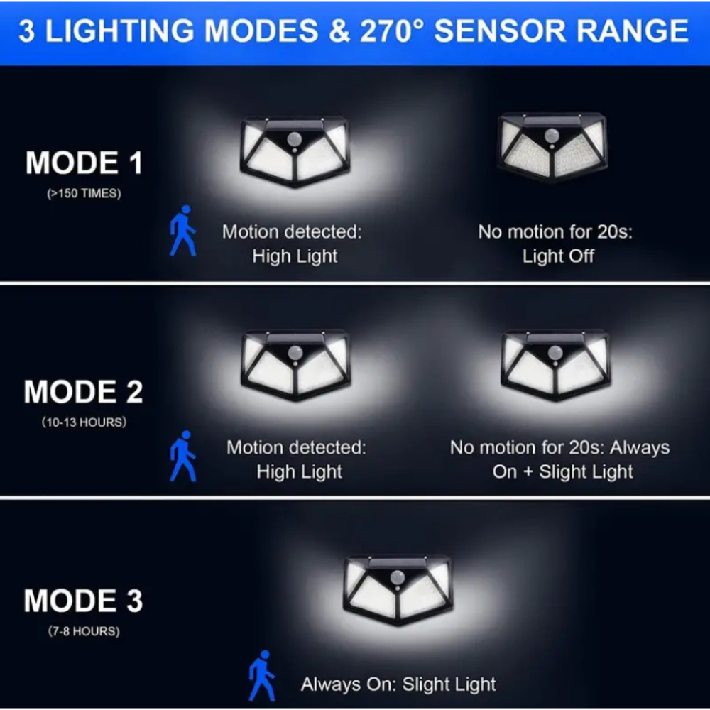 • Our solar wall light offers three modes for versatile use, including Sensor Mode, Dim Light Sensor Mode, and Medium mode.
